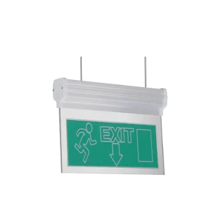 HINGED VIALED EMERGENCY EXIT SURFACE DOUBLE SIDED EXIT ARROW FACING SIDE, WITH RUNNING MAN AND DOOR 200992